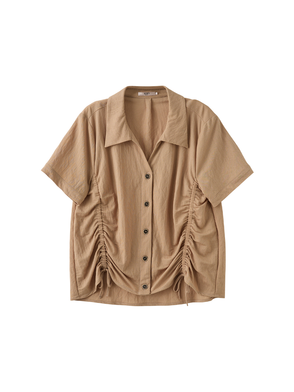 將經典襯衫注入設計感細節, 以側邊抽繩與抓皺剪裁, 打造可調整的立體輪廓。